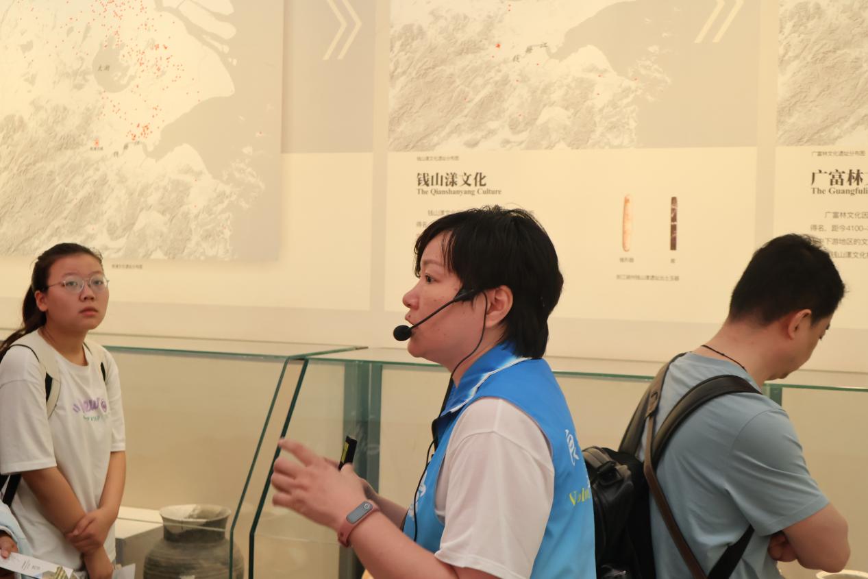 进入展馆后同学们有序参观,在讲解员的生动讲解下,了解一件件文物背后的文化底蕴。流连于精美文物之间,徜徉于远古文明之中,同学们深深惊叹于良渚人民的勤劳能干与创造力。5000年前的文化先进程度远超想象——青铜器和彩陶玉器展示了古代先民的工艺技术和审美追求;草裹泥修筑水利工程体现了古人充分利用自然的智慧;葬仪文化的神秘仪式让我们感受到古人对死者的尊重和对来世的留恋……这些文物不仅是历史的见证,更是能激发民族自豪感和自信心的宝贵财富。