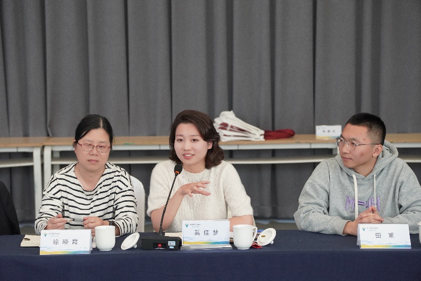 在自由交流环节,8090+新时代理论宣讲团代表与我院师生代表就高校与基层宣讲的差异、宣讲的内容与形式创新路径等话题展开讨论。衢州市柯城区“徐徐道来”名师工作室负责人徐宇强指出,基层宣讲需要用“小切口”来讲“大道理”,宣讲要以政治为底色、以理论为根基,同时融入活泼有趣的宣讲形式,做到深挖内容、学习理论与尝试跨界的有机结合。我院学生讲师团指导教师张立程肯定了此次联学联讲活动对推动理论与实践相结合、“思政小课堂”与“社会大课堂”相结合的意义,强调理论宣讲要坚持“内容为大”的理念。我院青年教师讲师团代表奚佳梦从人民主体地位、文化现代化、文化主体性三方面,指出余东村的多方面发展实践是对马克思主义理论的现实证成,并强调了问题导向意识在理论宣讲中的必要性。我院学生讲师代表分别就如何做好“斜杠宣讲”、如何提升微党课听众“抬头率”、在宣讲中如何平衡形式与内容等问题与柯城区委宣传部、8090+新时代理论宣讲团代表展开交流。