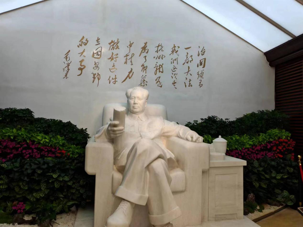 进入陈列馆后,最中间是毛泽东主席的雕像,墙面上镌刻着毛泽东主席1953年底在来杭州的火车上对随行人员说的话:“治国,须需有一步部大法。我们这次去杭州,就是为了能集中精力做好这件立国安邦的大事。”场馆共分为两个区域,还原宪法起草场景的区域和宪法教育区。在还原区中,有会议室、值班室、休息室、办公室等房间,多数保留着当年的物件和摆设,虽历经岁月的洗礼,却仍能让参观者得以窥见当年峥嵘。宪法教育区中,热心的志愿者们向同学们详细介绍了宪法的重要意义、起草过程、修正过程、发展历程、海外影响等多个方面,进一步加深深化了同学们对于宪法历史的了解,和对宪法重要地位的理解,弘扬了宪法精神,维护宪法权威,捍卫宪法尊严。
