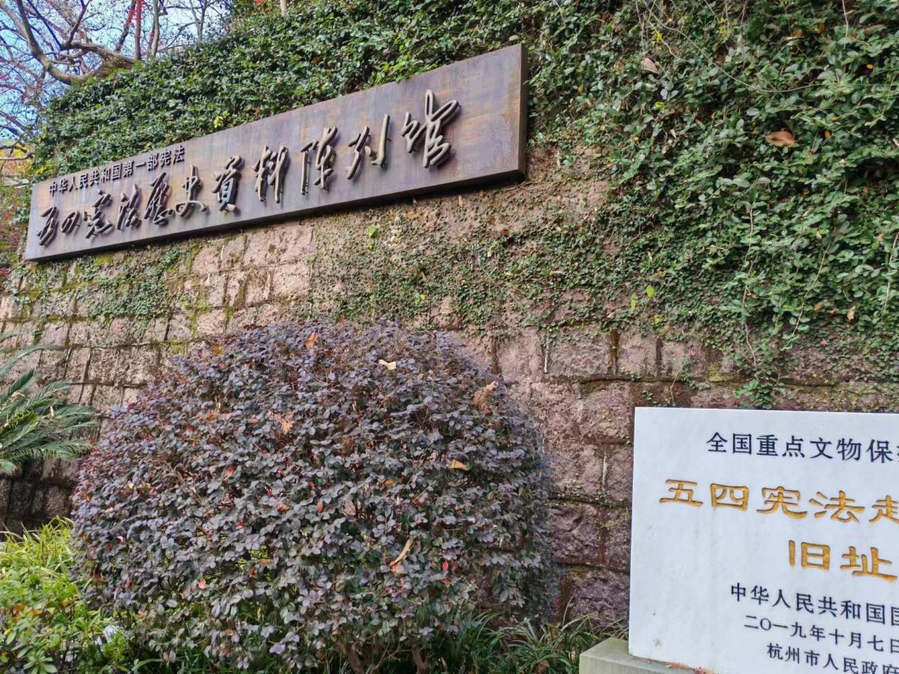 这里,北山街84号大院30号楼,如今的五四宪法历史资料陈列馆,在七十年前恰是新中国第一部宪法——五四宪法的起草地。从1953年12月28日至1954年3月14日,毛泽东率领宪法起草小组在这度过了77个日夜,起草了新中国第一部宪法的草稿初稿,为宪法草案的修改完善和宪法的正式诞生奠定了重要的基础。西湖的水温润了伟人的心,也温润了草案中的每一句、每一章,所以这部初稿也有一个浪漫的别名,史称——“西湖稿”。