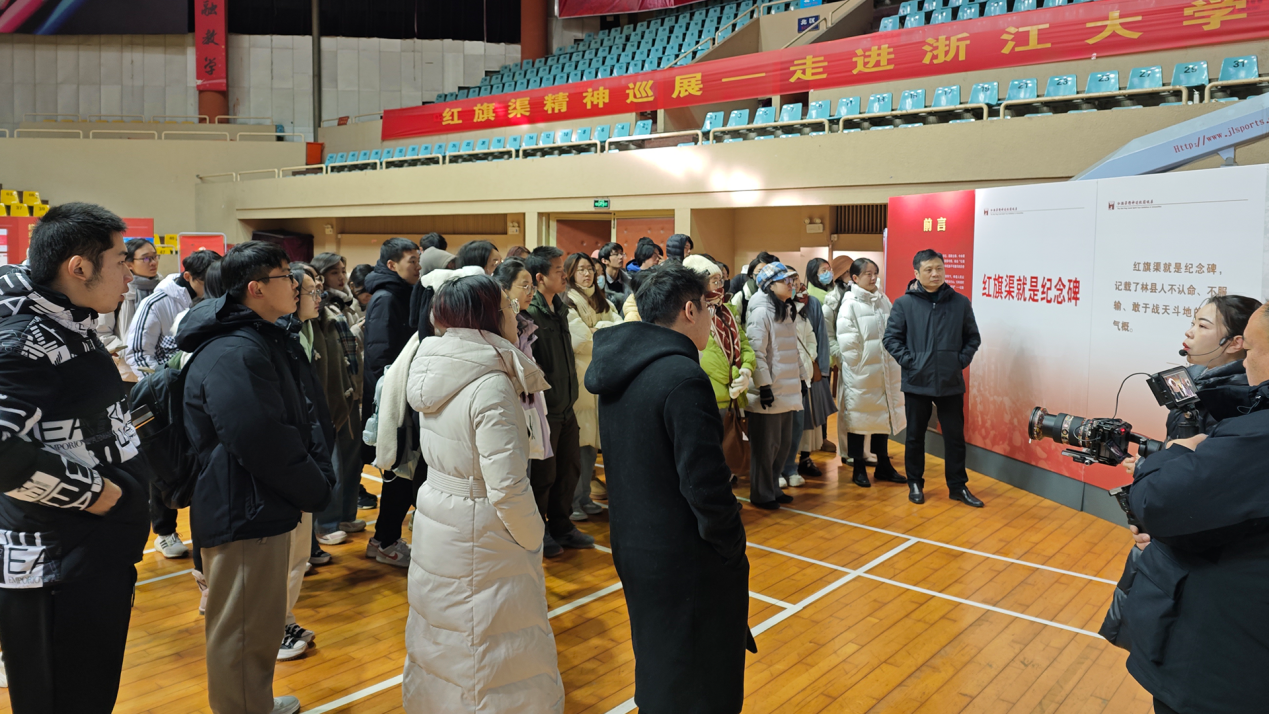 “红旗渠精神同延安精神是一脉相承的,是中华民族不可磨灭的历史记忆,永远震撼人心。”为拂去历史尘埃,追忆红色故事,感悟“自力更生、艰苦创业、团结协作、无私奉献”的红旗渠精神,2023年12月23日上午9:30——下午17:00,“毛泽东思想和中国特色社会主义理论体系概论”近500名学生分8个批次在赵永帅老师的带领下来到浙江大学华家池校区观看“红旗渠精神进校园巡展”,开展了一场生动鲜活的现场教学活动。