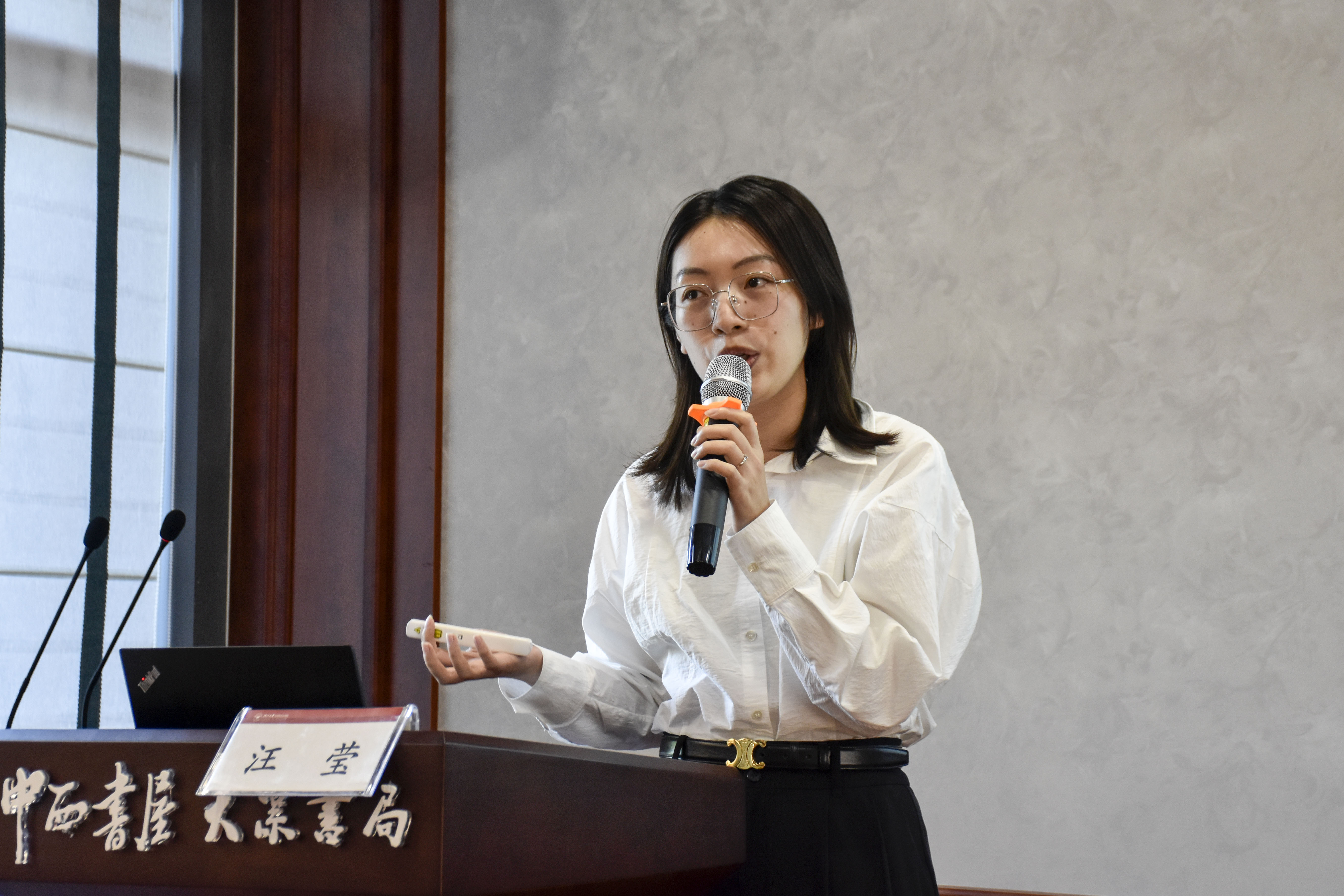 在理论宣讲汇报交流环节,我院师生宣讲员代表与柯城区8090+新时代理论宣讲团代表分别进行宣讲展示。我院青年教师代表奚佳梦以“真理的味道——《共产党宣言》首个中译本的诞生”为题,介绍了《共产党宣言》首个中译本诞生的历史背景、具体情况和现实影响。我院学生讲师代表唐雨萱进行了“‘小铅笔’背后的‘大乾坤’——元宝村的蝶变之路”的主题宣讲。唐雨萱以铅笔为切入点,讲述了黑龙江省尚志市元宝村自改革开放以来在书记张宝金的带领下,以思变之笔、生态之笔、实干之笔走出一条产业蝶变之路的故事。
