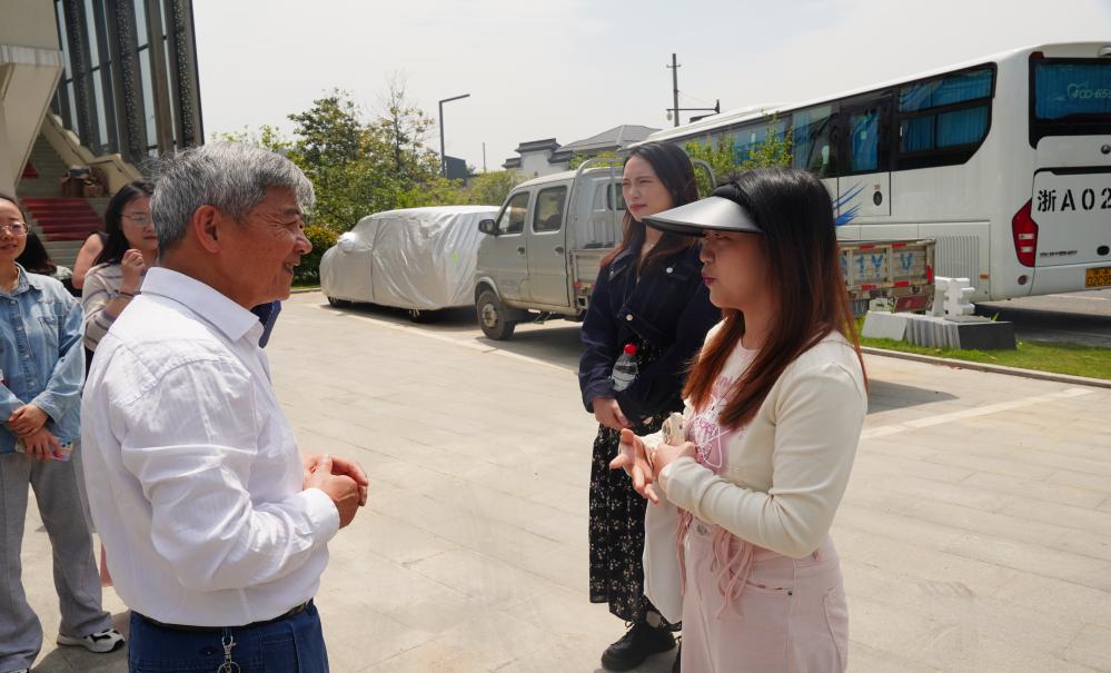 从农耕文明到工业文明,纺梭见证了乡村生活的变迁:从耕读传家的机杼与书声,到近现代机器的轰鸣,让人产生情感共鸣,是一种“乡愁”的具象化。传梭博物馆致力于展好一每把纺梭,讲好每一个故事,聆听每一段音符,让观众沉浸式感受与理解手工艺这门世界语言。讲解员带领支部成员欣赏了各式各样的纺梭,她讲到,每一把纺梭背后都是一段故事,都彰显了非遗手艺人的辛勤付出。浙江省土布纺织技艺非遗代表传承人、传梭博物馆馆长郑芬兰女士介绍了她创办乡村博物馆的初衷和理念,与同志们热情交流了乡村博物馆的发展定位、未来走向等重要话题,并指出乡村振兴最关键的是要吸引更多的人来到乡村,生活在乡村,投身于乡村建设。