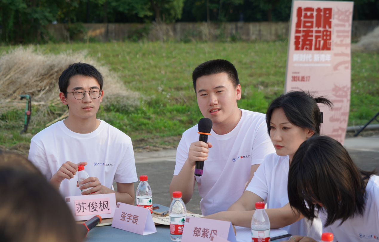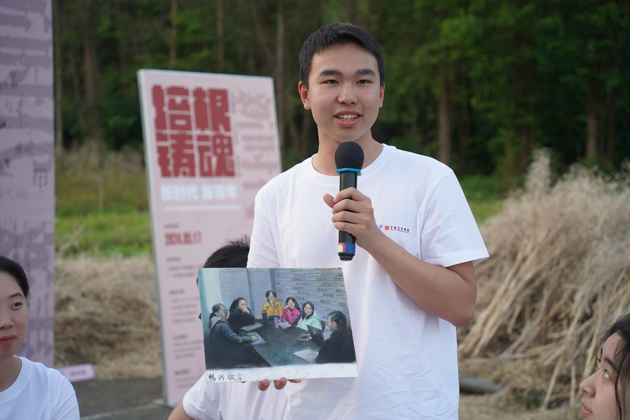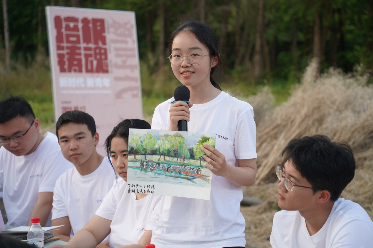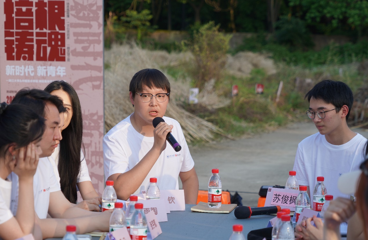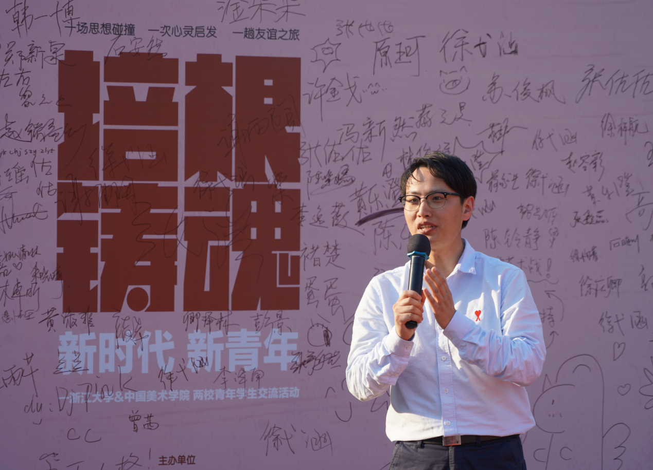 随后,两校本科生代表以“培根铸魂”为主题开展研讨交流。中国美术学院团委书记徐增鎏、中国美术学院专业基础教学部党委副书记童玲君、分团委书记夏旭林、分团委副书记徐跃恬,浙江大学马克思主义学院副教授、本科生班主任赵永帅、团总支副书记王星雨以及来自两校的六十余名余名团员青年参加此次交流活动。