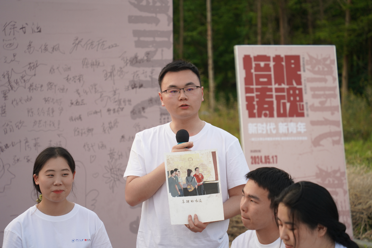 紧接着,浙江大学马克思主义学院副教授、本科生班主任赵永帅致辞。赵永帅老师指出,此次交流是融合了“理论真”与“艺术美”的场域。青年们要真正聚焦美,聚焦话题,在生存、生活和生活中做到既关注结果美,也注重过程美;既擅长创造美,也愿意体验美;既有心观察美,更能够成为美。赵老师强调,团员青年们要共同探寻“时代中”与“青年我”的耦合,超越现象烦扰与指标化的成长,从基础的大问题理解成长的小问题,从成长的小问题解释时代的大问题,成为时代的“增量”。赵老师最后鼓励青年们携手投身“个人之美”与“共同之美”协调发展的征途,基于人民性与大众理论继续创造美、实践美,做到各美其美、美人之美、美美与共。