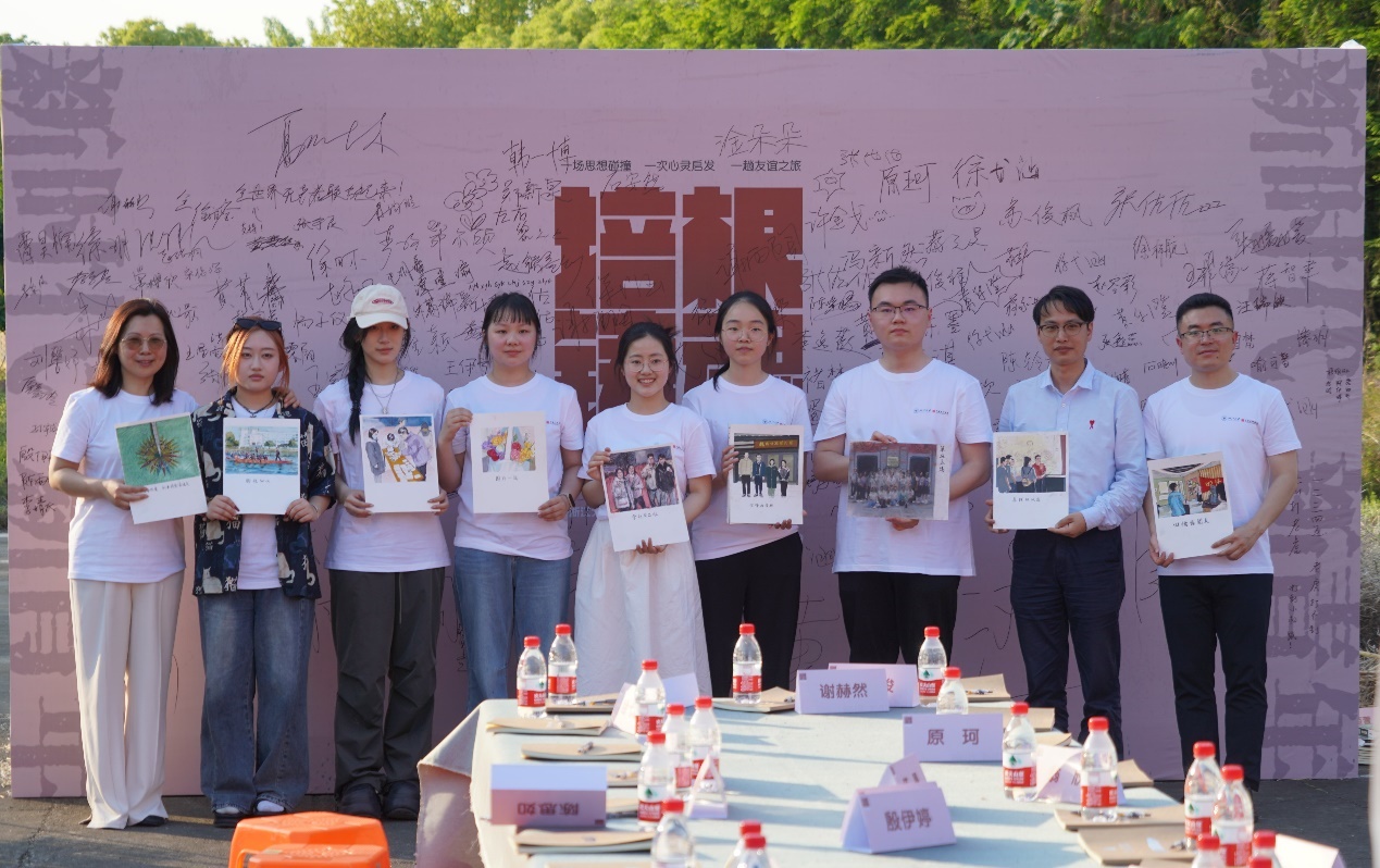 在随后的作品赠送环节中,两校师生代表向浙大马院本科生赠送作品并合影留念。这些艺术作品以浙大马院同学们提供的校园生活场景照片为蓝本,由美院专业基础教学部的同学们创作,定格大学趣事,共绘青春色彩。