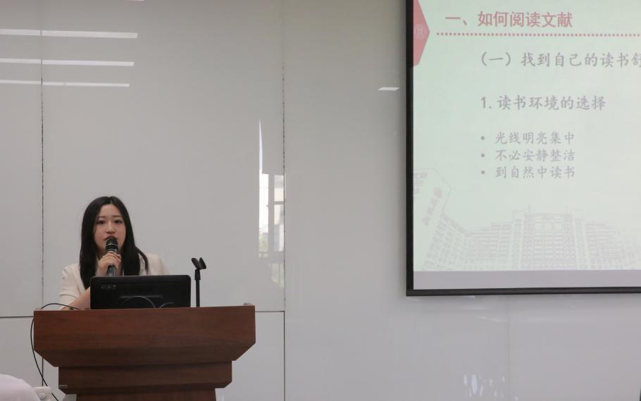 田雨晴同学作了题为《浅谈读书与治学》的分享。她围绕阅读文献、撰写论文、应聘准备三个方面展开详细介绍。着眼于阅读文献,田雨晴强调,首先要找到适合自己的读书环境,培养良好的读书习惯,根据需求采用恰当方式,并善用工具记录有效的读书笔记;其次要有针对性地展开阅读,在阅读中把握基本观点和关键结论,学习写作结构、思路和视角,寻找最新提法、规范表达和特色话语,总结方法和启示;最后,要广泛阅读外文文献、精读经典著作、研读党的文献。聚焦于撰写论文,田雨晴指出,问题是研究的起点,学术研究应秉持鲜明的“问题意识”,既要关注大问题,也要关注小问题。前期准备需要完整的文献综述和必要的论述摘编、图表。论文初稿的写作尤为关键,要以时间的连续性保证写作的流畅性;论文修改则要细致耐心,遵循先加法后减法的原则,力求简明、流畅、完整。投稿时,要选择合适的刊物和栏目类型。此外,她还强调引用规范的重要性,并鼓励同学们要培养好奇心,增强专注力和耐心。针对应聘准备,她分享了在材料准备、简历投递、面试流程等方面的经验,并强调了需要注意的事项。