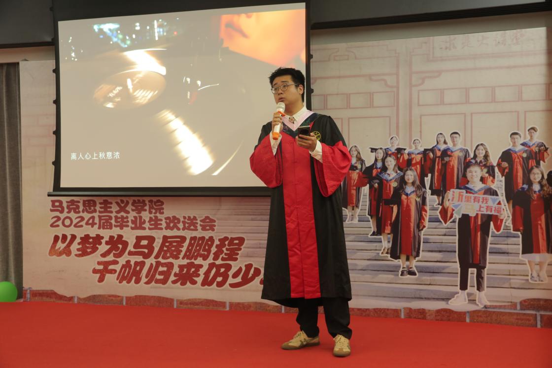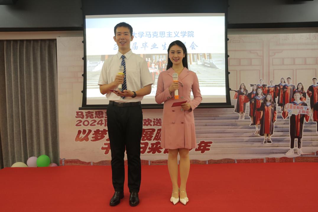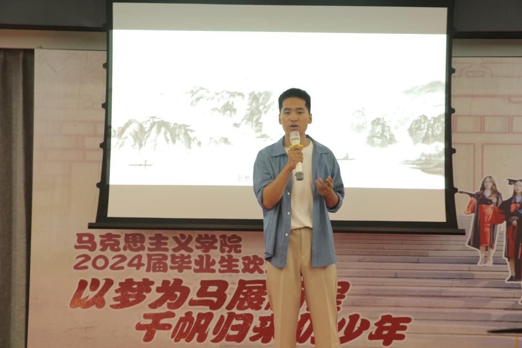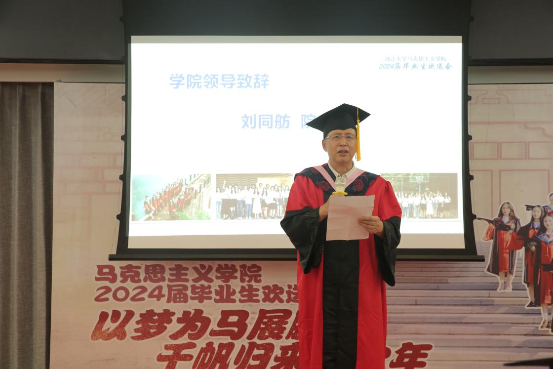在舒缓的旋律中,共话浙大求学的点点滴滴,用袅袅的余音,唤起每一位毕业学子的情感共鸣。6月21日晚,马克思主义学院2024届毕业生欢送会在成均苑2幢五楼大厅顺利举行。浙江大学马克思主义学院院长刘同舫教授、党委书记兼副院长李小东老师、党委副书记徐晓霞老师、副院长刘召峰教授、导师代表、研究生德育导师代表、学院行政老师和2024届毕业生出席本次毕业生欢送会,欢送会由2022级博士生杨幸和2023级硕士生吴昊主持。