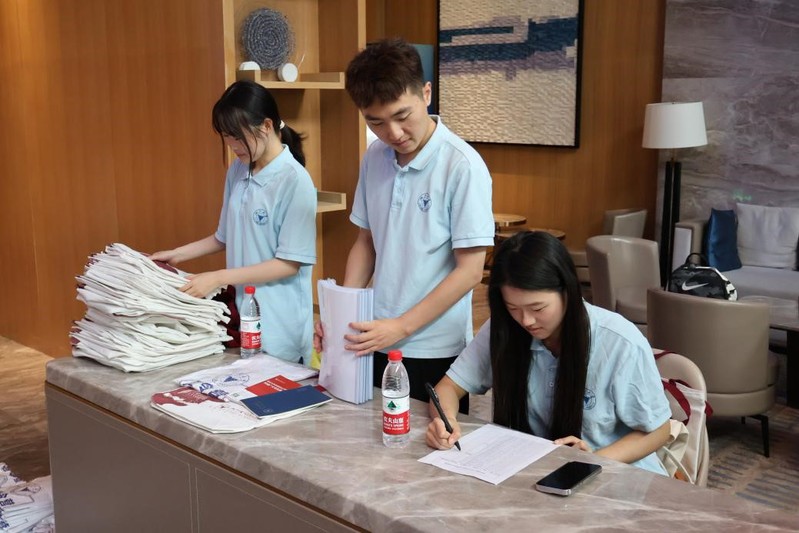 莘莘学子远道而来,学姐学长用心迎接。学院提前组建了一支优秀研究生志愿者团队以确保本次夏令营活动顺利开展。志愿者们怀着充沛的热情和专业的态度完成了联络对接、物资准备、导览讲解和会场布置等准备工作。