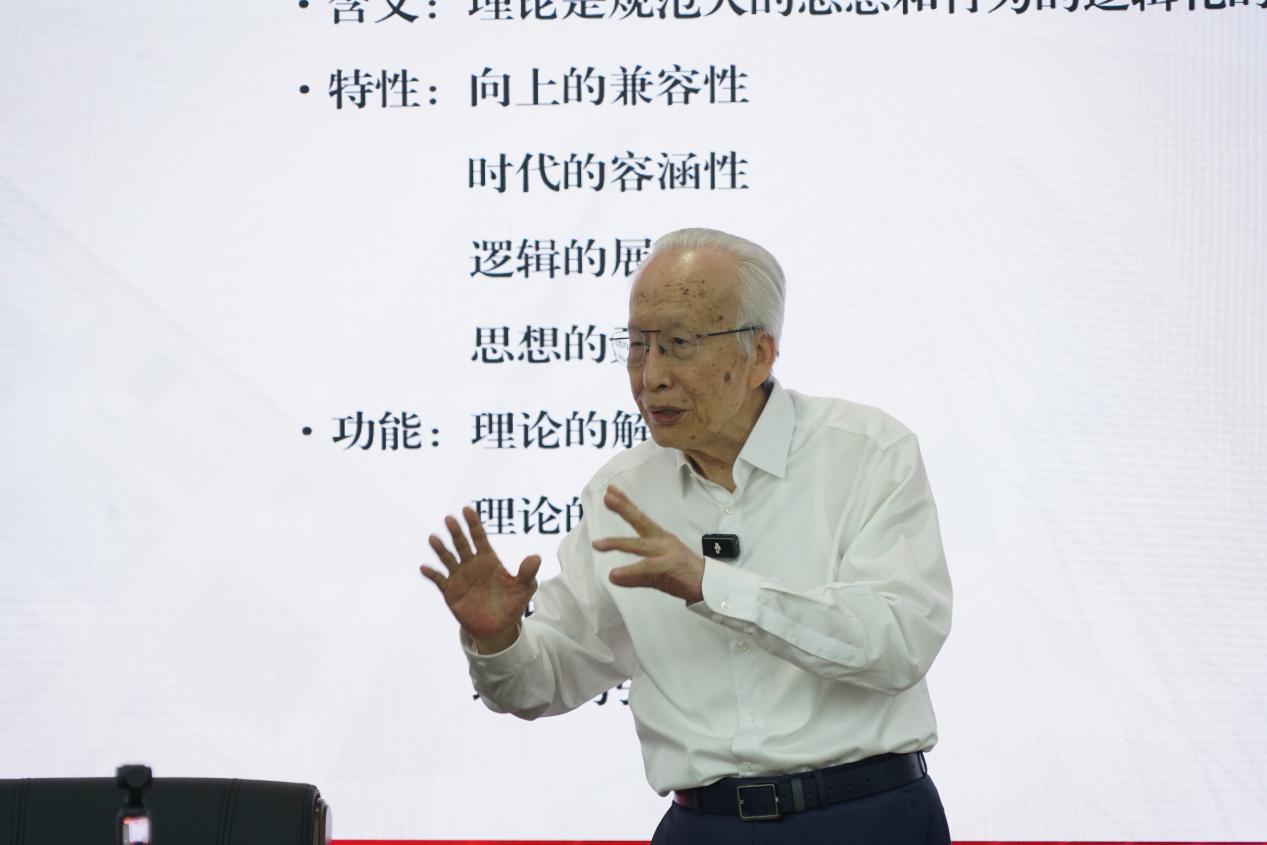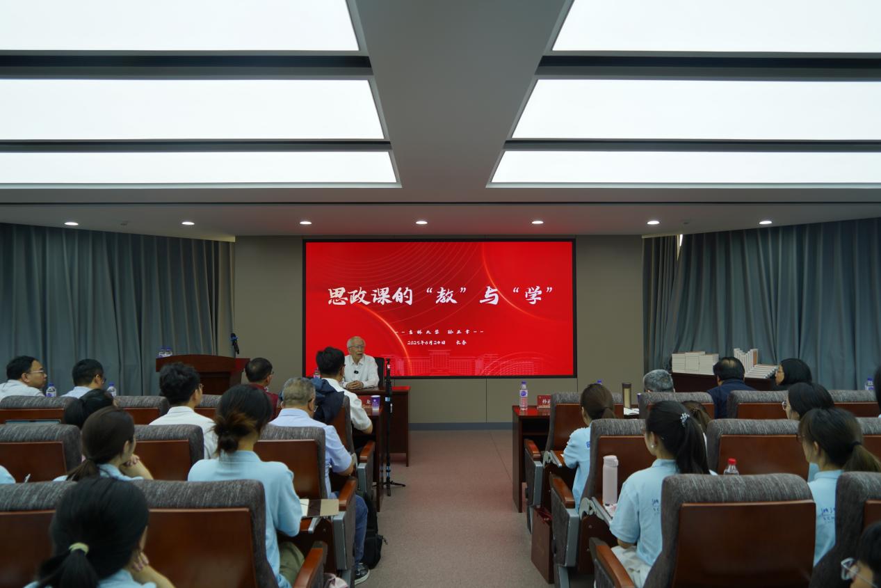 孙正聿教授作题为《思政课的“教”与“学”》的讲座。他以习近平总书记提出的“思政课的本质是讲道理”为导入,指出道理要讲深、讲透、讲活,对学生做到回应、说服、引导,并归结于“有理”和“讲理”两个核心特征。孙正聿教授从理论的含义、特性及功能出发,阐释了理论思维的“五种能力”,指出理论研究的“四个真字”“三个积累”并着重强调“四个不是”,最后着眼于理论研究的根本使命,指出思政教育中应如何做好“讲理”,为教师的思政教学和学生的专业学习指明了方向。
