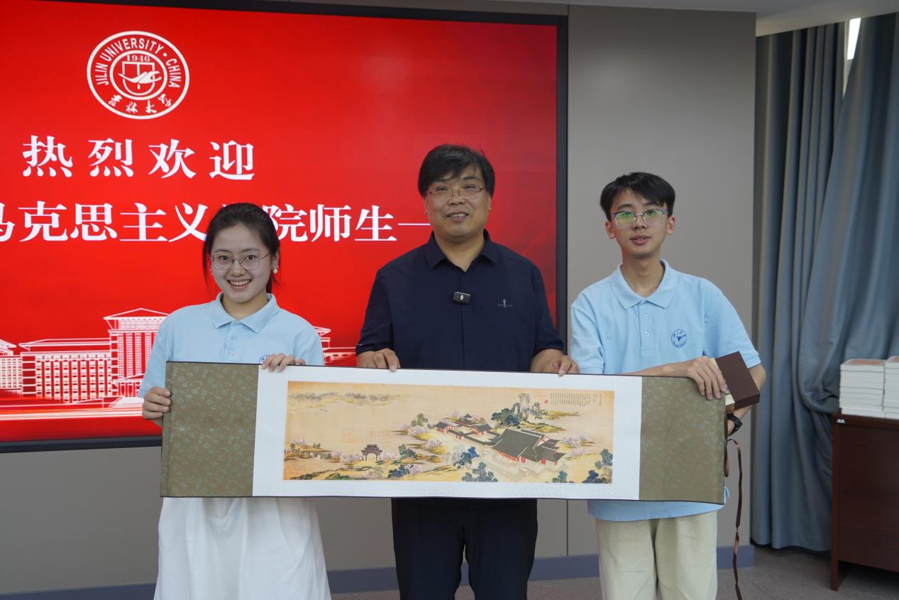徐晓霞向吉林大学哲学社会学院赠送纪念礼物。