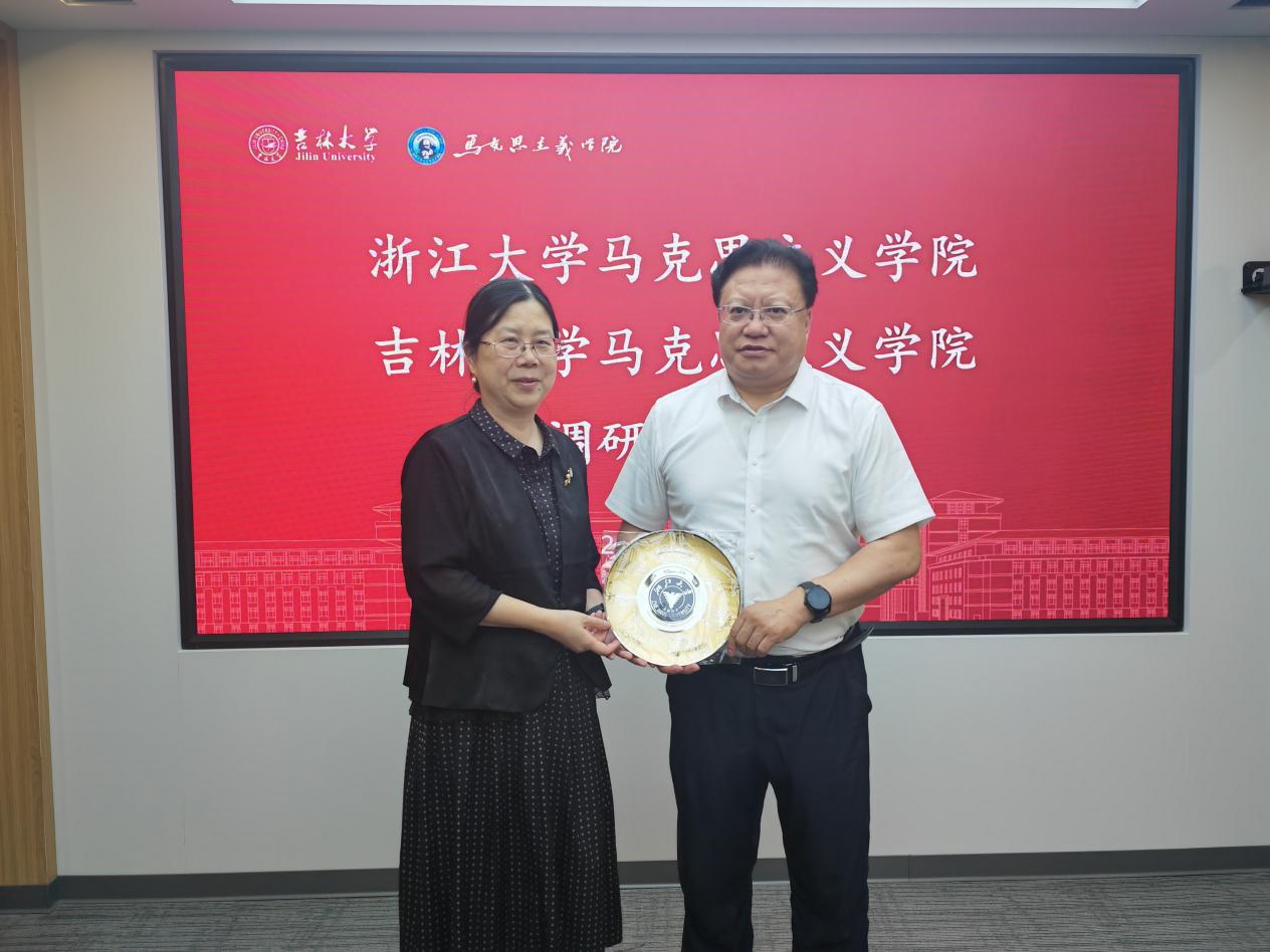 座谈会圆满结束后,徐晓霞向吉林大学马克思主义学院赠送纪念礼物。