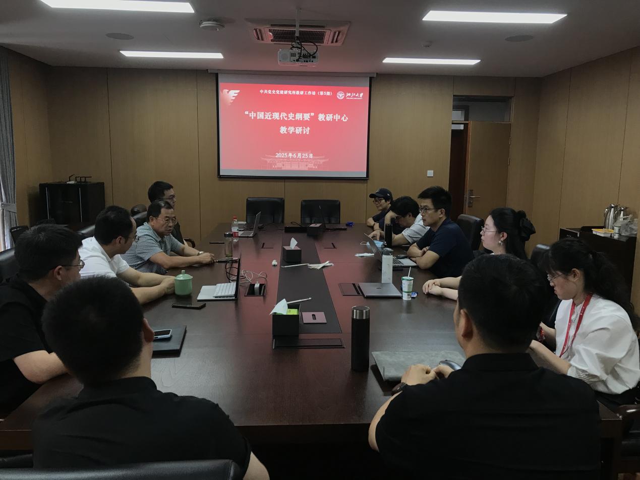 6月25日下午,我院“中国近现代史纲要”教研中心在成均苑2幢309会议室举行教学研讨,这也是中共党史党建研究所第5期教研工作坊。本此教研活动由董海樱老师主持,我院“纲要”课教师参与。
