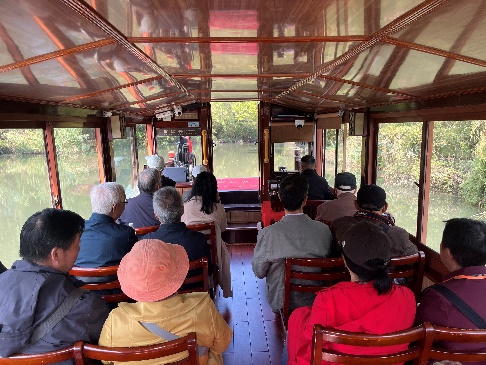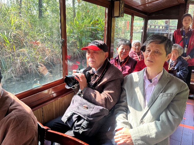 活动当日,天朗气清,惠风和畅。参加活动的退休教师们精神矍铄,早早地就来到了集合点。在工作人员的贴心陪伴下,大家乘上摇橹船,开启了此次西溪湿地之旅。西溪湿地是我国首个国家级湿地公园,被誉为“城市生态建设标杆”。 乘坐摇橹船,穿梭于蜿蜒的水道之间,可近距离感受“九曲十八弯”的湿地风光,品味江南水乡的生态和谐之美。