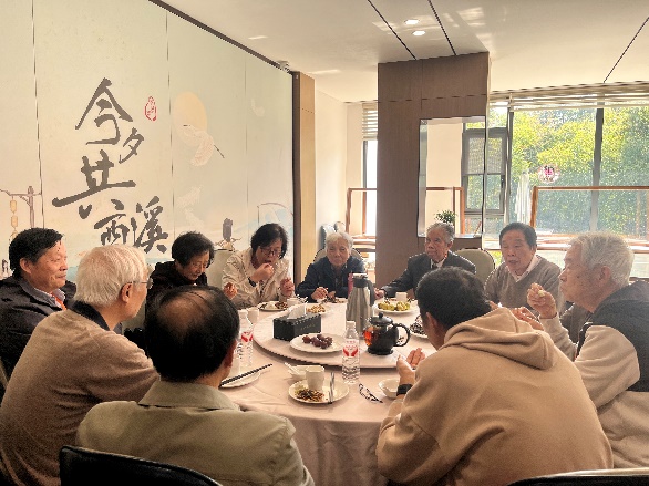 中午,学院在充满田园野趣的餐厅为退休教职工们准备了丰盛的午餐。老师们边吃边聊,相谈甚欢。席间,马克思主义学院党委副书记骆笑代表全体在职教职工向老前辈们致以最诚挚的节日祝福,衷心祝愿各位老师身体健康、乐享晚年。借此机会,骆书记也简单汇报了学院近年来的基本情况和新的进展。这些成绩的取得,离不开各位老前辈们的关心和支持,是一代代马院人智慧和汗水的结晶。