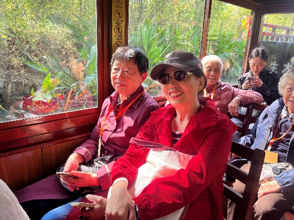 弃船登岸,老教师们漫步于林间小道,呼吸着清新的空气,沐浴着温暖的阳光。他们结伴而行,时而围坐于亭台之中,回忆往昔岁月,畅谈幸福晚年,时而驻足留影,用手机记录下这美好的时光。