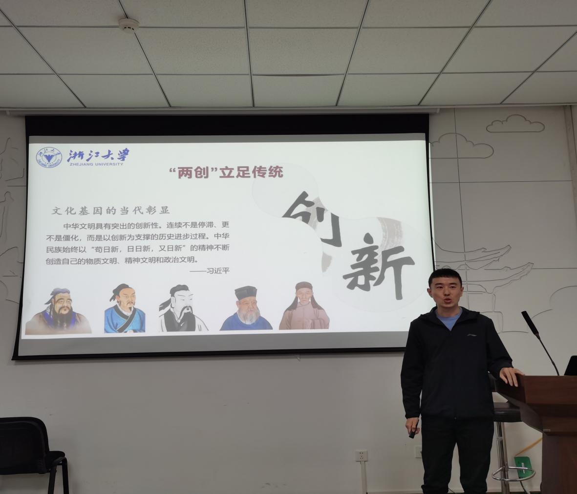 张广俊老师以《推动中华优秀传统文化创造性转化、创新性发展》为题,以精巧的国潮动画进行教学设计和教学展示,重点回答了“两创”提出的必然、“两创”的内涵表征与“两创”的价值坚守三大理论问题,最后设置如何处理好“古今中西”关系的课堂思考,提升学生的课堂参与度。