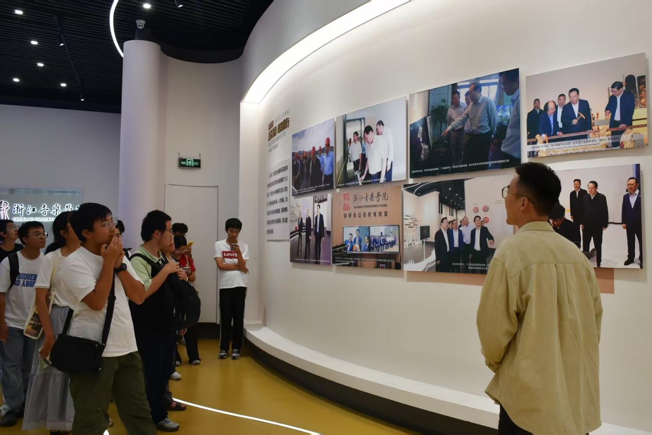 最后,在“浙音之窗”展示区,大家全面了解了学院的学科特色、校园文化与党建引领下的学院建设历程。