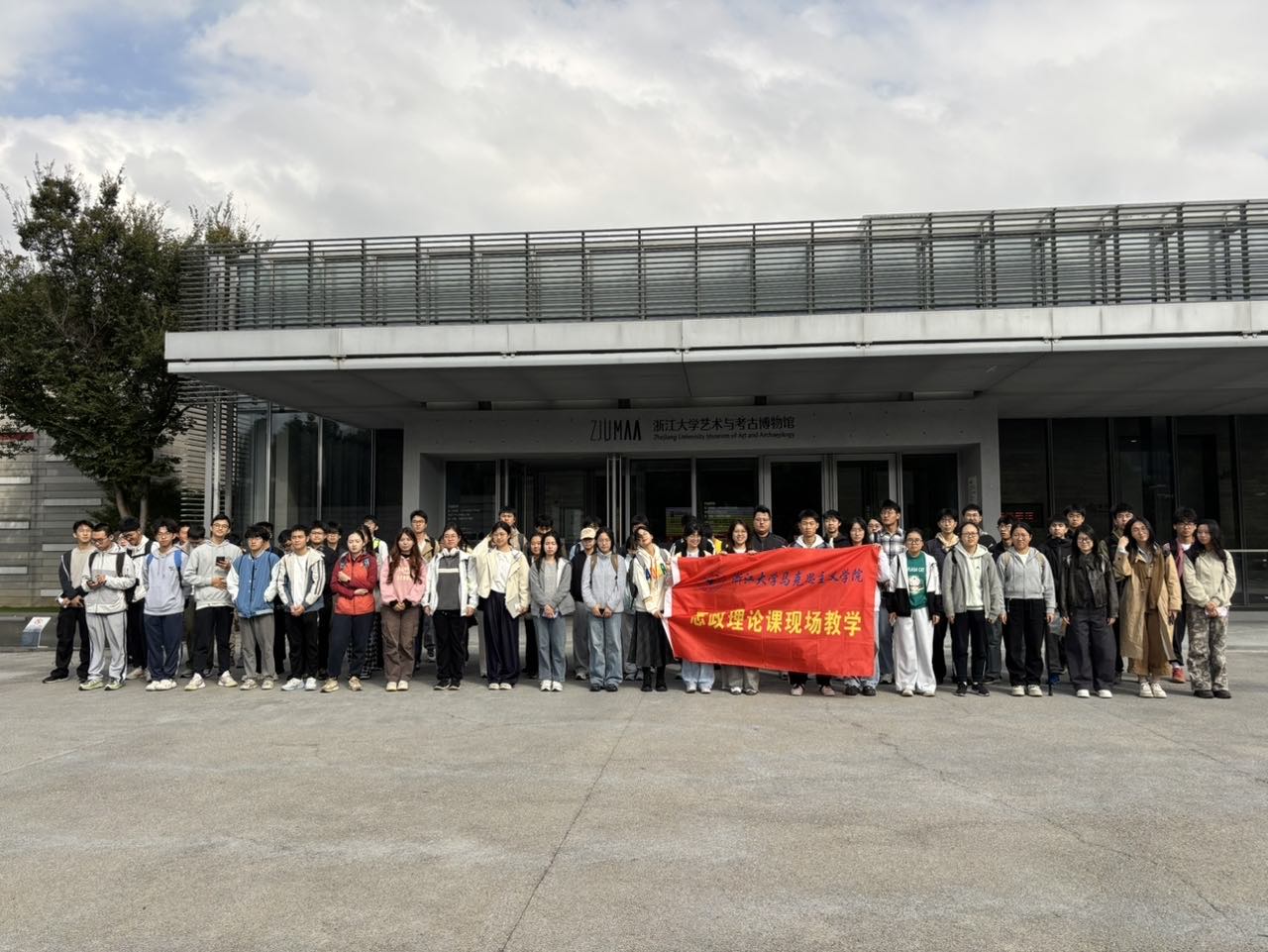 2025年10月22日上午十点,舒泽虎老师带领《习近平中国特色社会主义思想概论》周三课程班级的70名同学前往浙江大学艺术与考古博物馆开展现场教学活动。