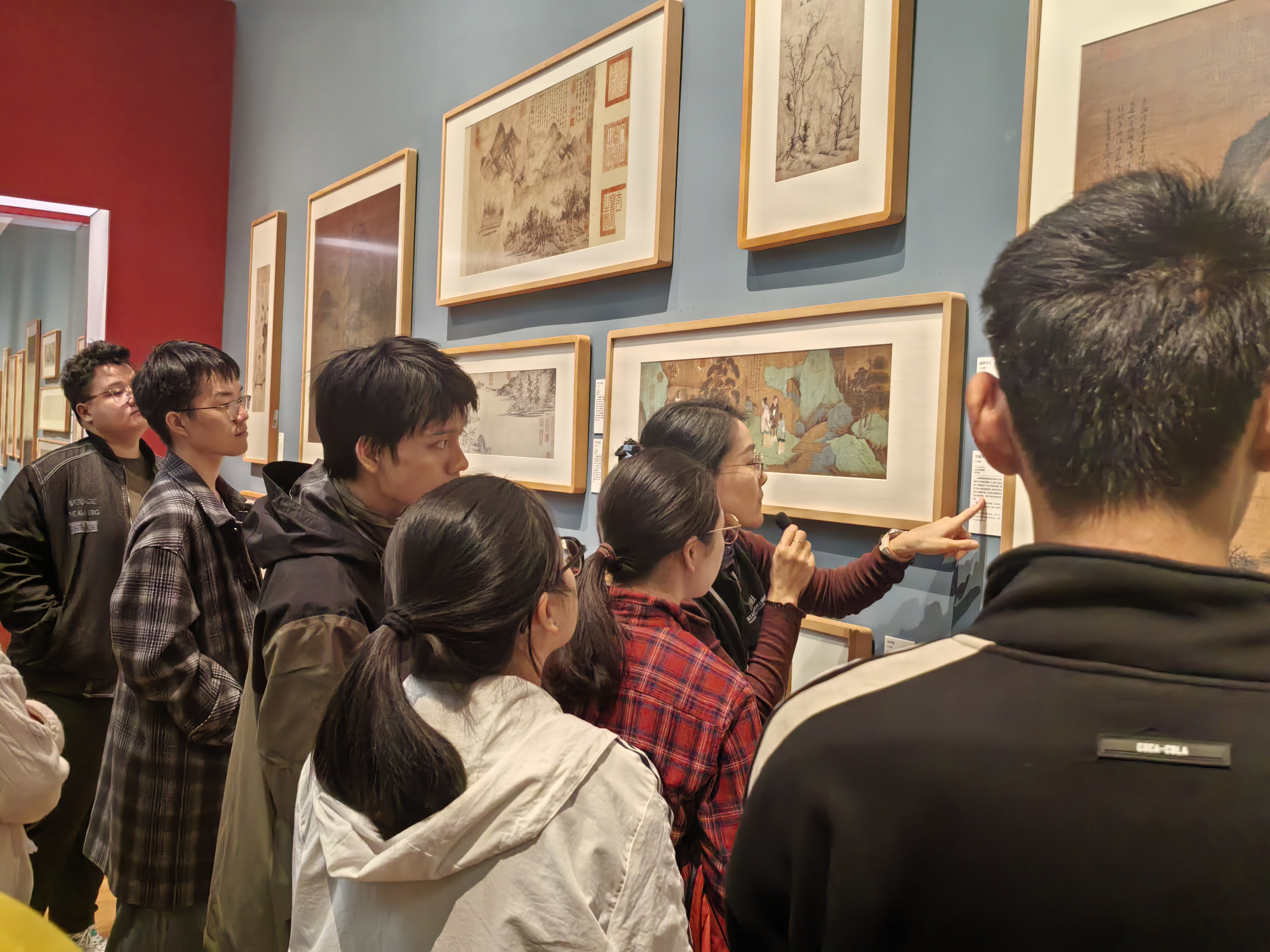 让思政课行走在千年笔墨丹青的画卷上,让文化自信浸润于绵延不绝的血脉里。本次现场教学活动突破了传统课堂的空间局限,以导览促学的模式丰富教学内容。班级同学有序分成两组,在两名艺博馆讲解员的带领与引导下,先后参观学习了“盛世修典—中国历代绘画大系成果展•元画专题展”展览。