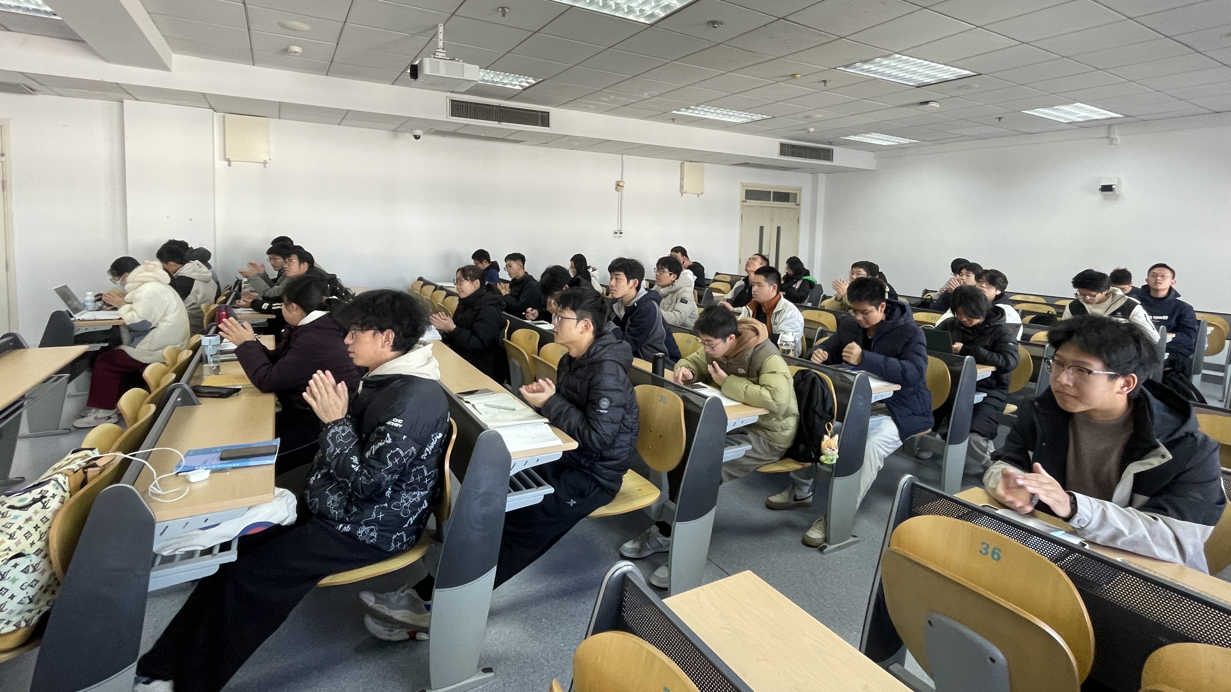 在本次专题授课的尾声,雷蕾书记深刻指出,重温国歌是为从其铿锵旋律与厚重内涵中,汲取穿越迷雾、走向未来的精神力量。她以毛泽东同志“世界是你们的,也是我们的,但是归根结底是你们的”这一穿越时空的青春箴言作结,向同学们寄予了“以青春之我、建青春之国”的殷切期望。本次课程以国歌精神为纽带、以青年成长为落点,深刻阐释了国歌所承载的爱国情怀与奋斗精神,通过丰富鲜活的实践案例,进一步加深了同学们对爱国主义的认知理解与情感认同。课程在全场热烈的掌声中圆满结束。