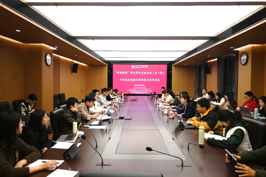 为搭建跨学段、零距离的师生学术交流平台,针对性解答研究写作中的各类困惑,2025年12月2日下午,由浙江大学马克思主义学院团委指导,浙江大学学生青年马克思主义研究会承办的首期“研途解惑”师生学术交流活动在紫金港校区成均苑3幢502室举行。本次活动以“中共党史党建方向研究与写作实务”为主题,特邀浙江大学求是特聘教授、中共党史党建研究所所长段治文老师,研究所孙冲亚、丁乙老师出席指导。马克思主义学院党委副书记、纪委书记骆笑老师出席活动。