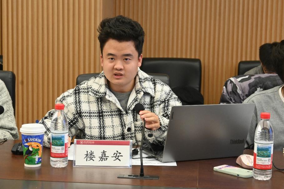 在互动交流环节,与会师生围绕四位同学的报告内容展开深入研讨。裘婧灵同学进一步规划了论文的完善路径:“后续我将重点研读习近平总书记关于人工智能与对外开放的重要论述与实践,深入理解其全球治理、人类命运共同体等维度的精神意蕴,努力提升研究的学理性和原创性。”研讨中,2024级党的建设专业博士生王璜结合相关报告主题,对“斗争”概念的源流展开了延伸思考,他提出,中国共产党“斗争”概念的形成并非孤立存在,而是深受多重外源性因素的共同影响。基于此,他建议从概念史的研究视角切入,通过追溯术语传播脉络与语境变迁,系统厘清“斗争”话语的生成与演变路径。
