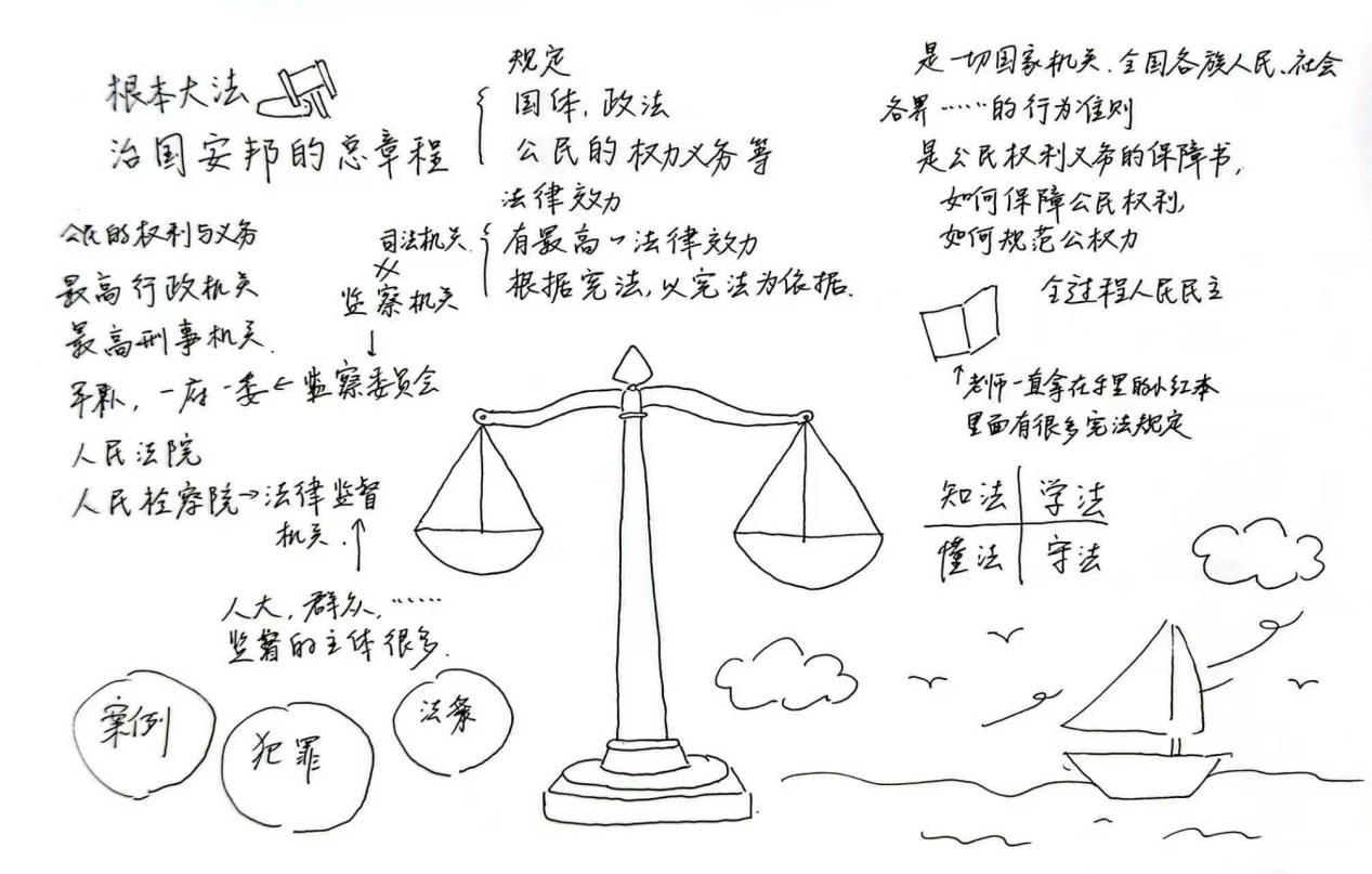 参与“法治专家进课堂”活动的学生纷纷表示,各位律师、检察官的专题分享让他们对法治有了更直观、深刻的理解。有多位同学以绘画为载体,将“我心中的宪法”从抽象概念转化为具象画面,用艺术语言传递法治信仰。