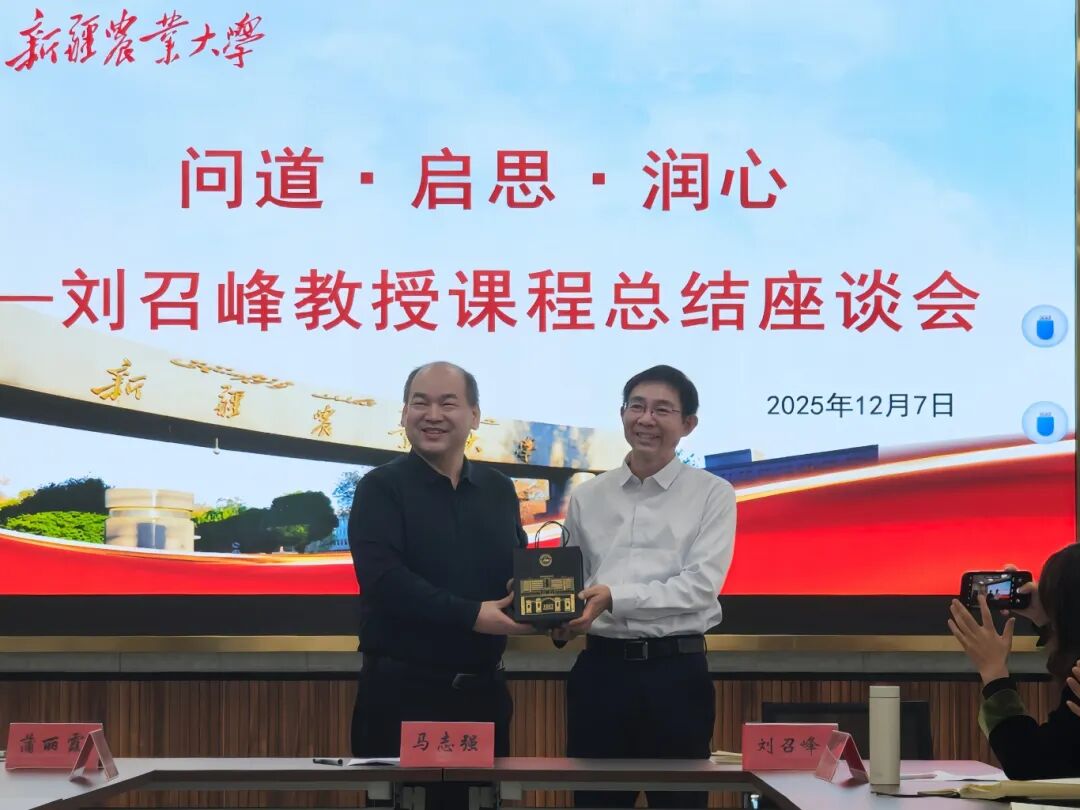 刘召峰教授在授课之余,积极参与新疆农业大学马院的教学研讨与青年教师指导工作,分享浙大马院在课程建设、学术研究、人才培养等方面的经验。12月7日上午,新疆农业大学马院院长蒲丽霞主持召开了刘召峰教授课程总结座谈会。参与学习的师生们齐聚一堂,分享学习体会,深化课程成效。座谈会上,师生代表发言踊跃,对刘召峰教授的讲授给予了高度评价——不仅是一次成功的知识传授,更是一次深刻的思想启迪和卓越的教学示范,还是一次“学术如何滋养教学”的生动典范,有效激发了师生研读经典的内生动力。
