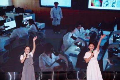网络世界亦绝非法外之地,网络家园的清朗和谐需要你我共同守护。由AI辅助作词作曲的双人对唱《云端点亮希望》,直击网络匿名背后的善恶博弈与谣言迷障,思辨数字时代的虚与实、快与慢、冰冷与温暖,倡导以善意取代尖刻、用理解化解分歧,让尊重与真诚在云端生长;诗朗诵《指尖的温度》则用声声问询引发现场师生关于如何以理性涵养网络文明新风的思考,以“屏幕那段有心在跳荡”呼吁师生传递指尖的温暖,共建温馨清朗的网络家园。