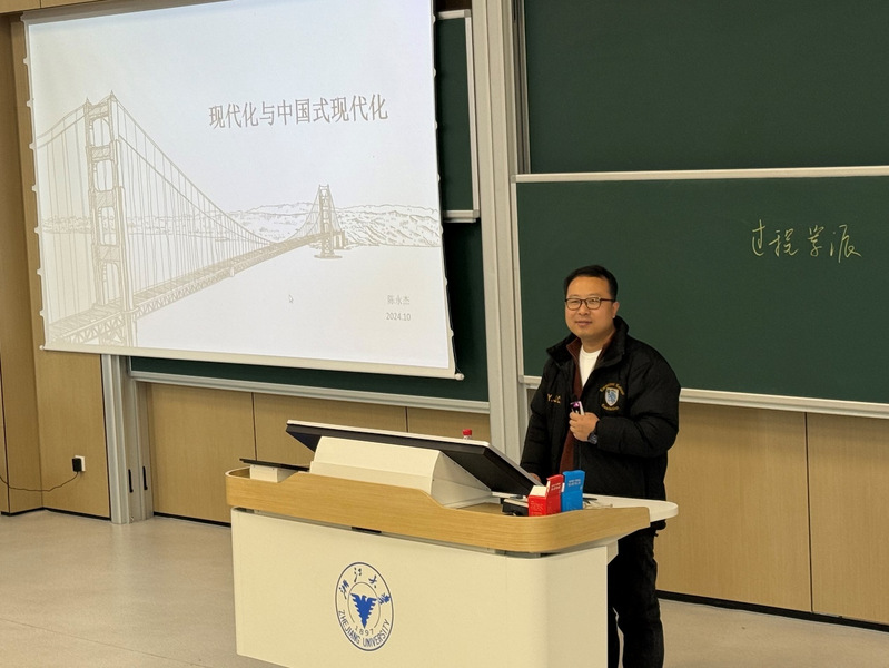 为引导学生深入理解中国式现代化的理论内涵、历史脉络与实践路径,2025年12月25日上午和下午,杭州师范大学公共管理学院副院长陈永杰教授应邀走进“习近平新时代中国特色社会主义思想概论”课堂,以“现代化与中国式现代化”为题开展专题讲座。