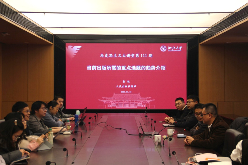 1月13日,浙江大学马克思主义大讲堂第111期在成均苑3幢502会议室顺利举行。人民出版社编审曹歌应邀作“当前出版所需的重点选题的趋势介绍”主题讲座。讲座由马克思主义学院副院长(主持工作)包大为老师主持,学院20余名师生参加。