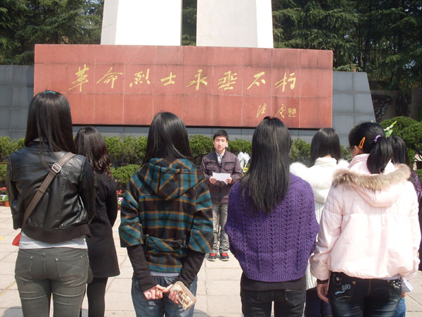 阳春三月,杭城春光无限好。3月29日上午,整个城市沐浴在温暖的阳光中,在思政部直属总党支硕一支部、直属团总支的组织下,09级全体党员、团员来到杭州市万松岭烈士陵园参加清明祭扫烈士墓活动。
