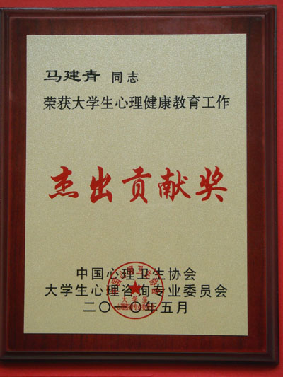 在近日召开的“第十一届全国大学生心理健康教育与咨询学术交流会”上,我校思政教研部副主任马建青教授获得了全国大学生心理咨询专业委员会授予的大学生心理健康教育“杰出贡献奖”。这是全国大学生心理咨询专业委员会授予的最高终身荣誉奖,以表彰马建青教授20多年来对中国高校心理健康教育事业所做出的杰出贡献。马建青教授是此次该奖项唯一的获得者。