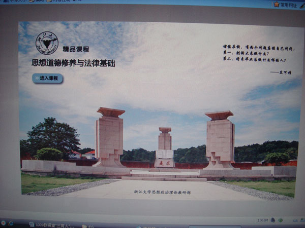 我部《思想道德修养与法律基础》国家精品课程网站网址:http://jpck.zju.edu.cn/link/fljc