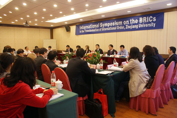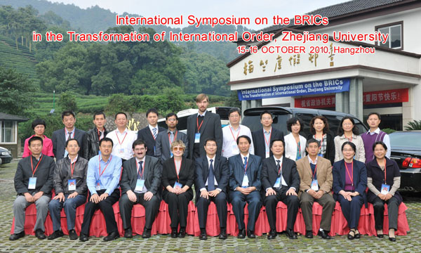 2010年10月15日-16日浙江大学思想政治理论教学科研部主办、国际政治研究所承办的“世界转型中的金砖四国国际研讨会”(the International Symposium on the BRICs in the Transformation of International Order)在杭州梅竺度假村圆满结束。浙江大学副校长罗卫东教授出席了开幕式并发表了热情洋溢的致辞。来自俄罗斯圣彼得堡大学国际关系学院、印度防卫分析研究所、中国人民大学、复旦大学、同济大学、武汉大学、南京大学、南京解放军国际关系学院、中南财经政法大学、浙江理工大学、浙大经济学院、浙大国际政治研究所、浙大外国语言与文化交流学院等单位的近30位专家学者出席了此次国际研讨会。