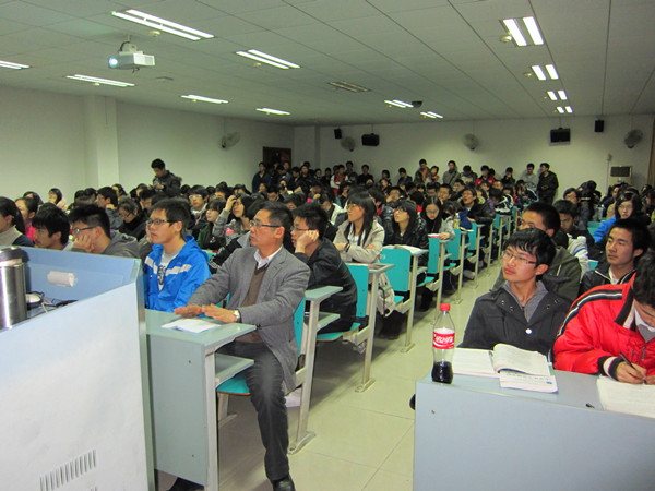 讲座吸引了众多同学,现场座无虚席,能够容纳190人的教室来了200多人。在两个半小时的讲座当中,无人退场,并且随着内容的深入,教室后面聚集的人越来越多。讲座结束后,一些同学还意犹未尽,围着陈老师继续就相关法律问题进行咨询。
