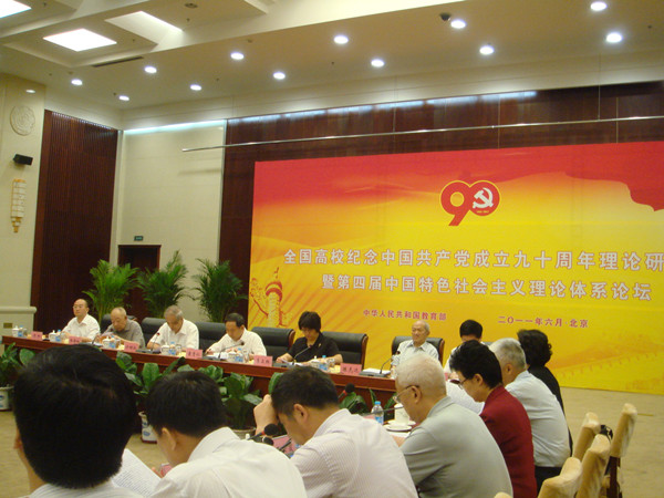 6月26日,教育部在北京举办了“全国高校纪念中国共产党成立90周年理论研讨会暨第四届中国特色社会主义理论体系论坛”。教育部袁贵仁部长、李卫红副部长出席了大会并在会上发表了重要的讲话。我国著名的马克思主义理论研究专家北京大学沙健孙教授、中国人民大学陈先达教授、北京师范大学张静如教授等专家在大会上做了发言。