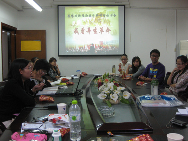 2011年10月10日晚上,思政部第三届研究生会在西溪校区教学主楼1018会议室举办了“我看辛亥革命”读书会,2011级研究生积极踊跃参加,2010级研究生石然和2011级博士生黄芳作为嘉宾应邀出席了此次读书会。