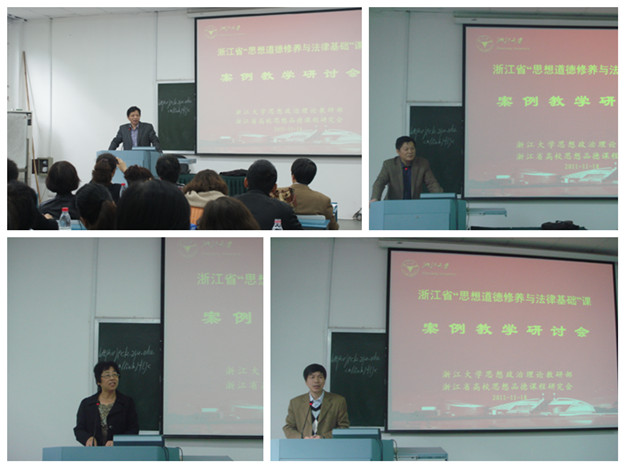 为了更好地落实中宣部、教育部和省教育厅有关文件精神,推进“思想道德修养与法律基础”课(以下简称“基础”课)教学改革,研讨贴近学生实际、符合教育教学规律和学生学习特点的教学方法,继今年5月由浙大思政部和省高校思想品德课程研究会联合在浙大召开全省“基础”课实践教学研讨会后,11月18日又在浙大西溪校区邵科馆召开了全省“基础”课案例教学研讨会。来自全省高校近80位教师参加了案例教学研讨会。浙江省教育厅宣教处处长薛晓飞和思政部主任吕有志参加了开幕式。