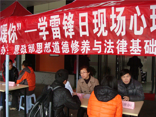 在3月5日学雷锋日的前一天,思政教研部思想道德修养与法律基础教研中心、党支部、研究所响应中央号召,主办了以“走近我,温暖你”为主题的大型现场心理咨询和法律咨询服务活动。这是教研中心开展的“社会主义核心价值体系建设与大学生修养”系列活动的内容之一。