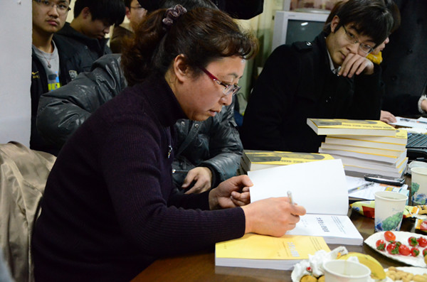 为了促进相互认识、活跃气氛,师生们以展现才艺的方式介绍了自己。在融洽的气氛中,师生进行了热烈的交流,老师们逐一回答了同学们关心的问题。本次活动中最有意义的一环是教研中心党支部的赠书和赠语活动。党支部为5个寝室的20位同学分别赠送了两本书:一本是新生之友马建青教授主编、王东莉教授副主编的新作《大学生心理健康》,一本是李开复著的《做最好的自己》。5位“新生之友”老师分别在书上为自己联系的学生写下了美好的寄语,把此次活动推向了高潮。
