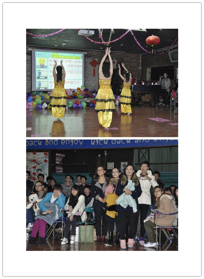 入场前,根据入场随机抽取的号码分好的六个团队进入破冰,大家相互介绍认识,很快就拉近了彼此的距离。简短的破冰活动后,由机械系和经济学院同学联袂表演了荧光舞。他们别出心裁,在黑暗的背景中,只看得见炫目的荧光、灵动的曲线。开场舞过后,进入了游戏环节。四个欢乐的小游戏为男女生们创造了更进一步面对面交流的机会,有“背筐投球”, “心有灵犀一点通”, “背靠背夹送气球”, “歌词接龙”。游戏中还穿插了几个学院的精彩表演,其中思政部研一的三名女生杨光、宋宁宁、付祎为大家带来了舞蹈“天竺少女”, 性感的动作、婀娜多姿的舞蹈,充满魅力的表演很快就吸引了场上所有人的眼球,掀起了一波又一波的高潮。