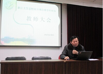 为进一步提高思政理论课教师的责任意识,规范课堂管理,强化意识形态工作宣传, 2014年12月5日下午,思政教研部在西溪校区教学主楼1109室召开全体教师会议。