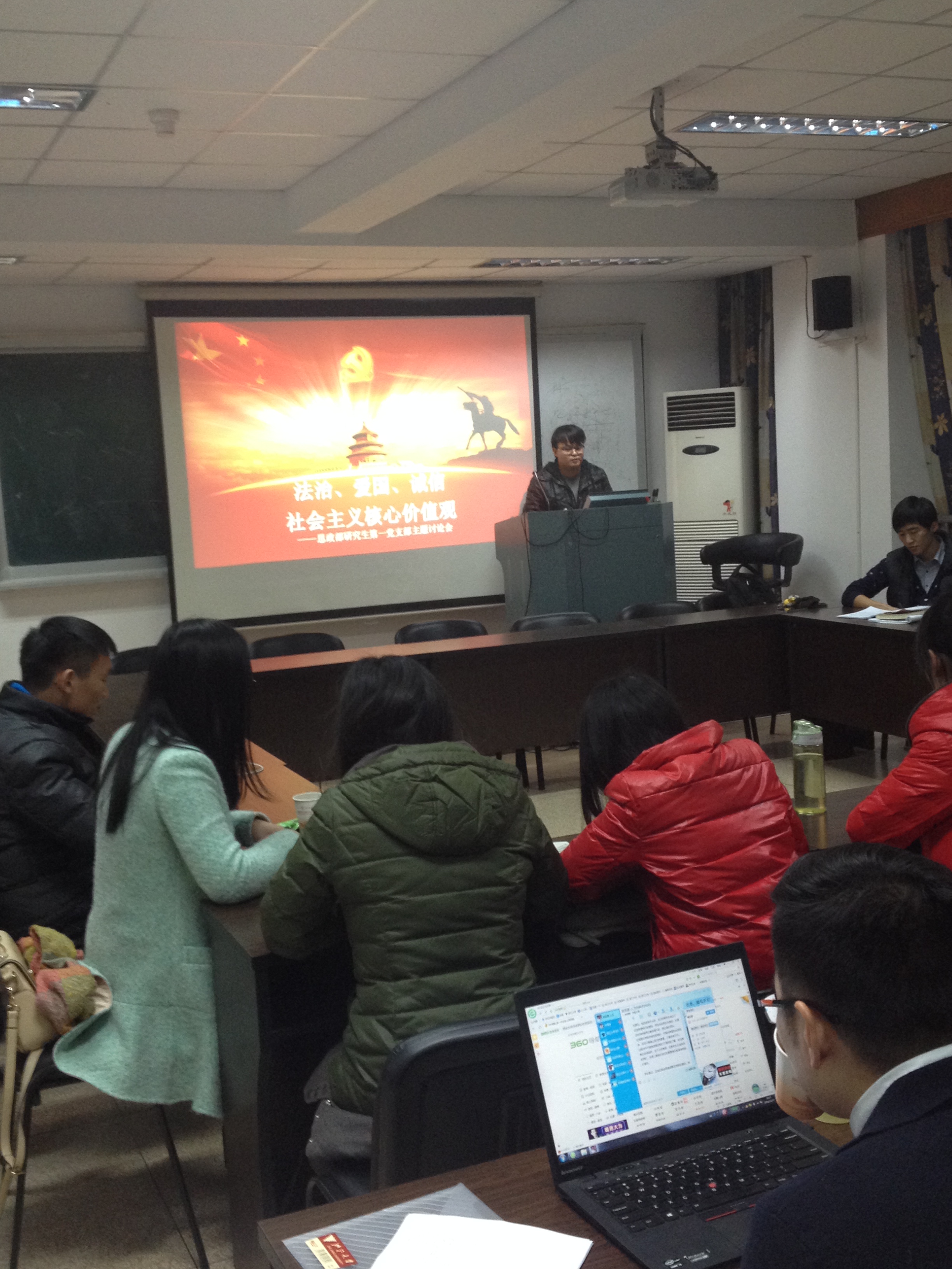 为深入学习十八届三中全会精神,践行社会主义核心价值观,12月17日,思政部2014级研究生党支部召开了主题学习讨论会。本次讨论会由支部组织委员陈寅瑛主持,光华法学院团委书记陆飞华莅临指导。