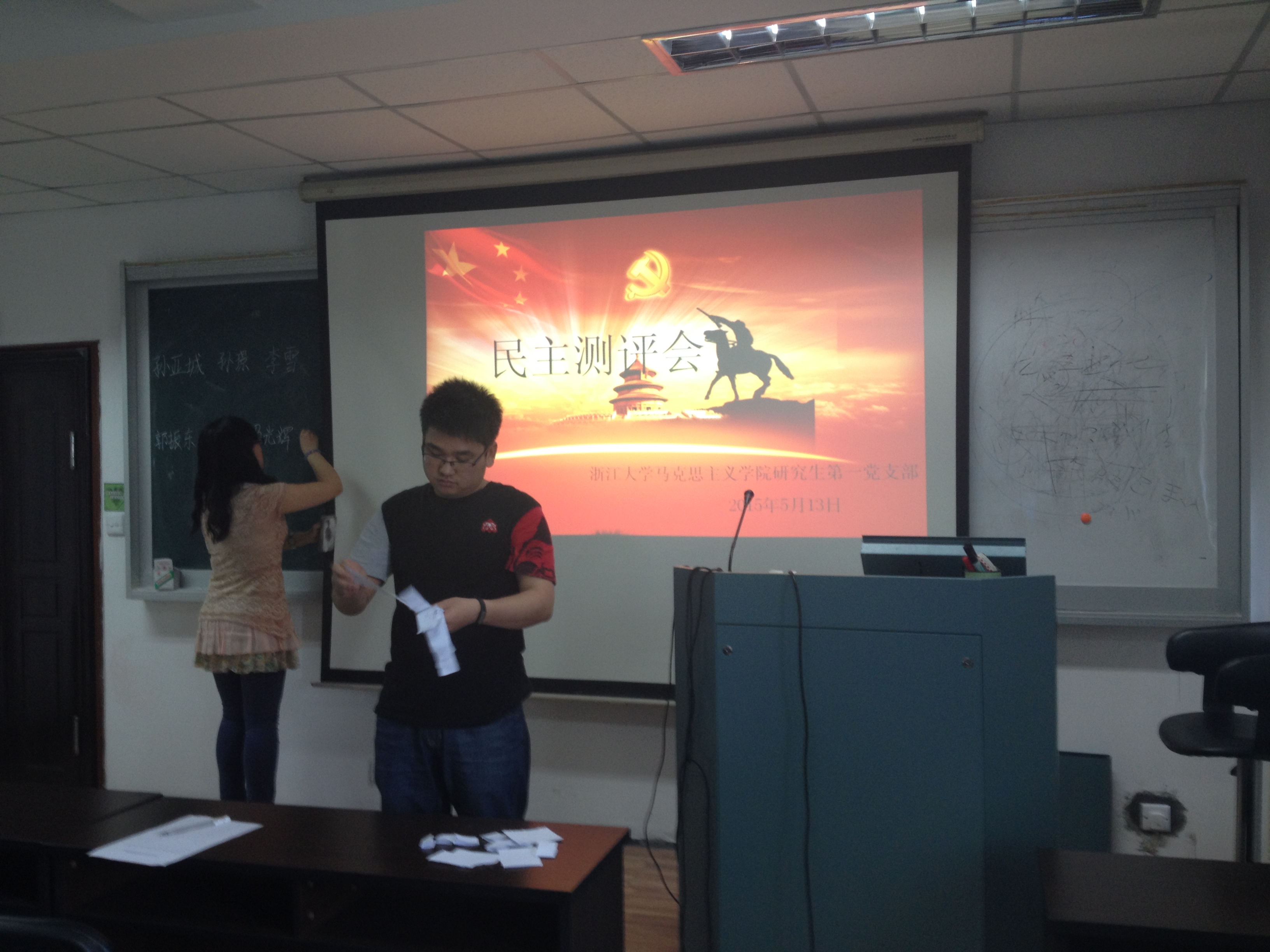 接下来全体研究生根据考察对象的实际表现进行民主投票,选票采取无记名方式。经过民主评议,郭振东和孙璟两位同学列入预备党员发展对象。