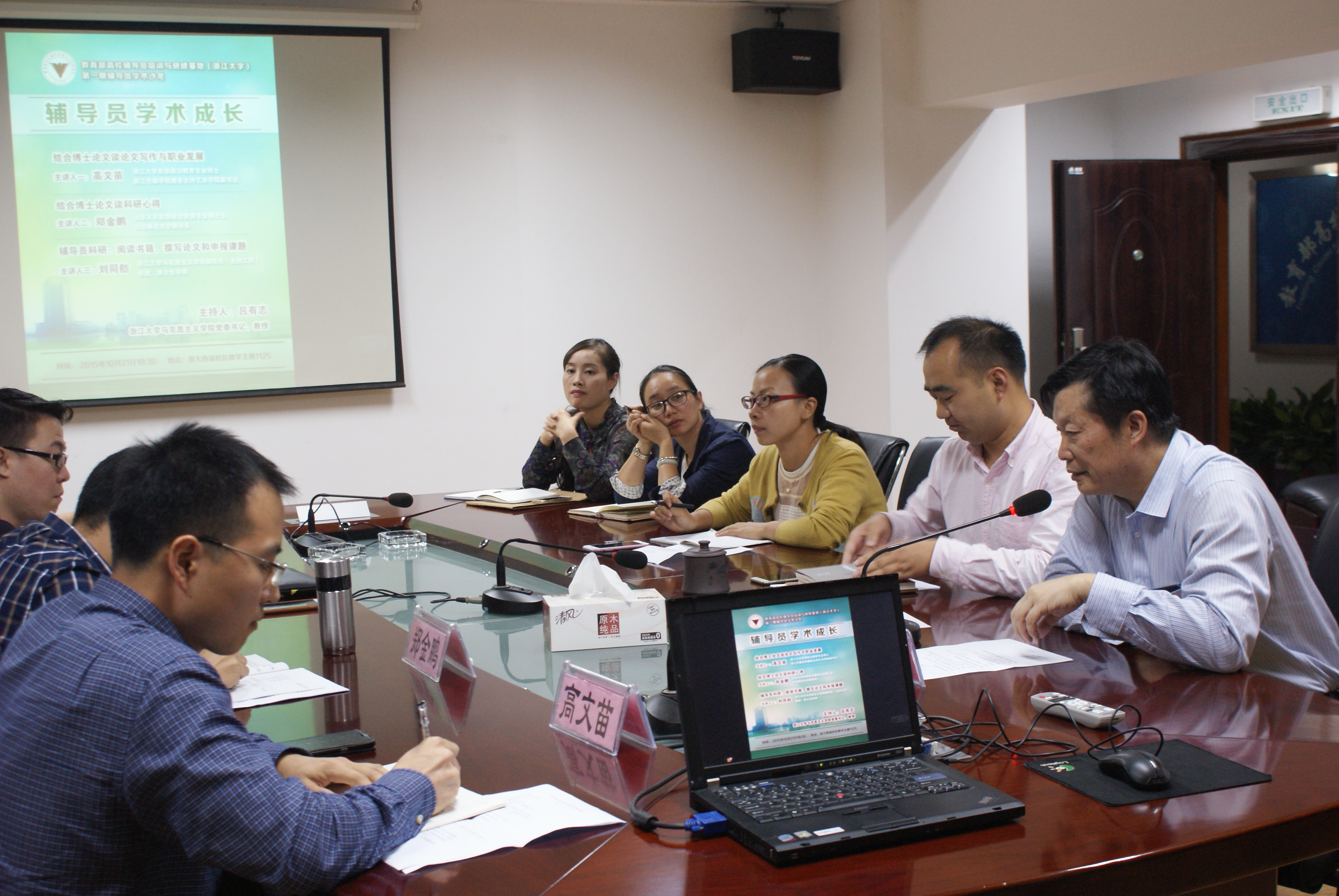 10月21日晚,教育部高校辅导员培训和研修基地(浙江大学)(以下简称“基地”)在浙江大学西溪校区教学主楼1125教室举行了首期辅导员学术沙龙。基地办公室主任、浙江大学马克思主义学院党委书记吕有志教授,浙江大学马克思主义学院副院长(主持工作)刘同舫教授、辅导员思想政治教育专项计划博士研究生、辅导员访问学者与浙江大学部分辅导员共同参加了学术交流活动。活动由基地办公室副主任代玉启副教授主持。