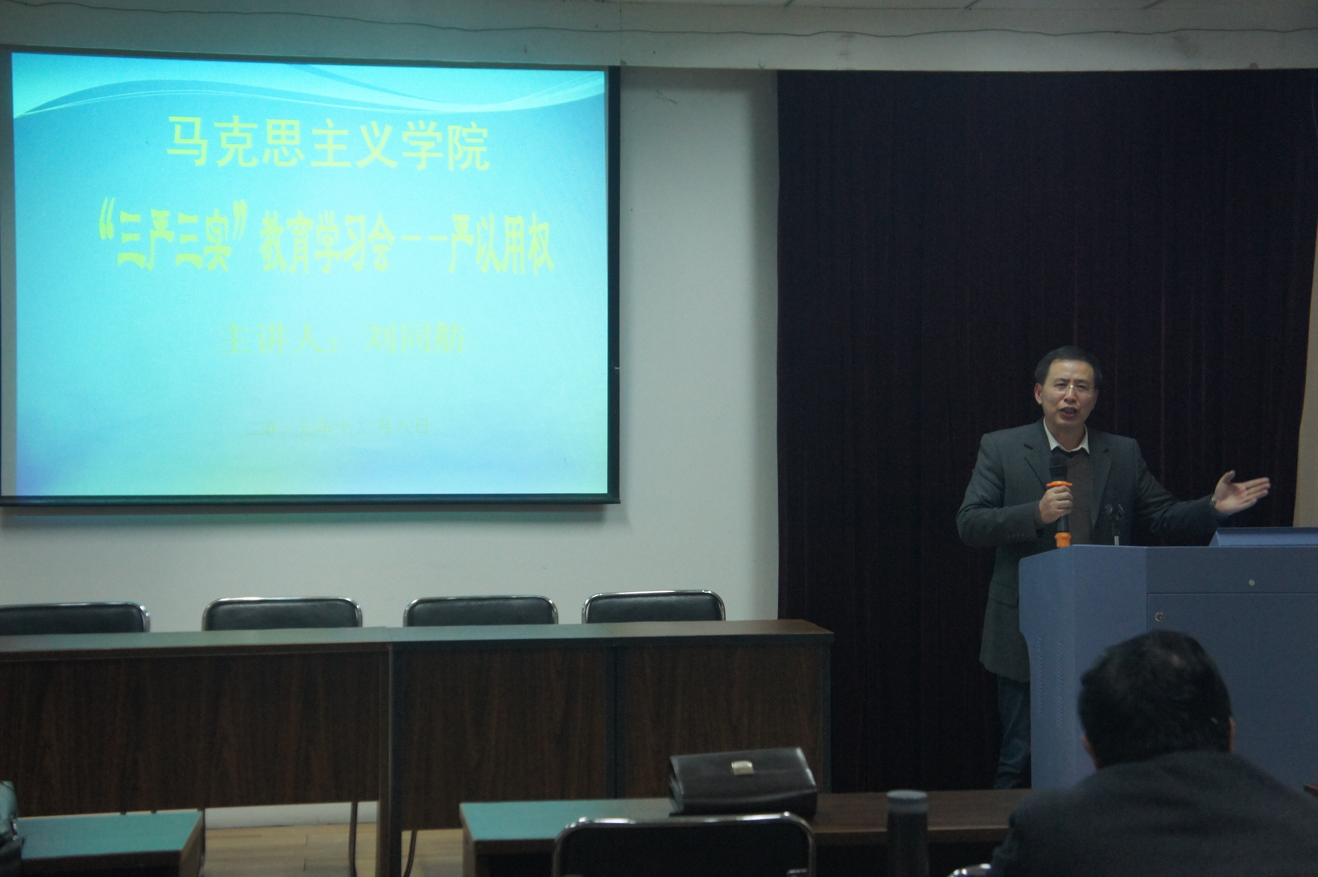 12月8日晚上,马克思主义学院在西溪校区教学主楼1109多媒体教室召开“严以用权”专题学习会,会议由学院党委书记吕有志主持,学院主持工作副院长刘同舫作主题报告,全体教师参加会议。