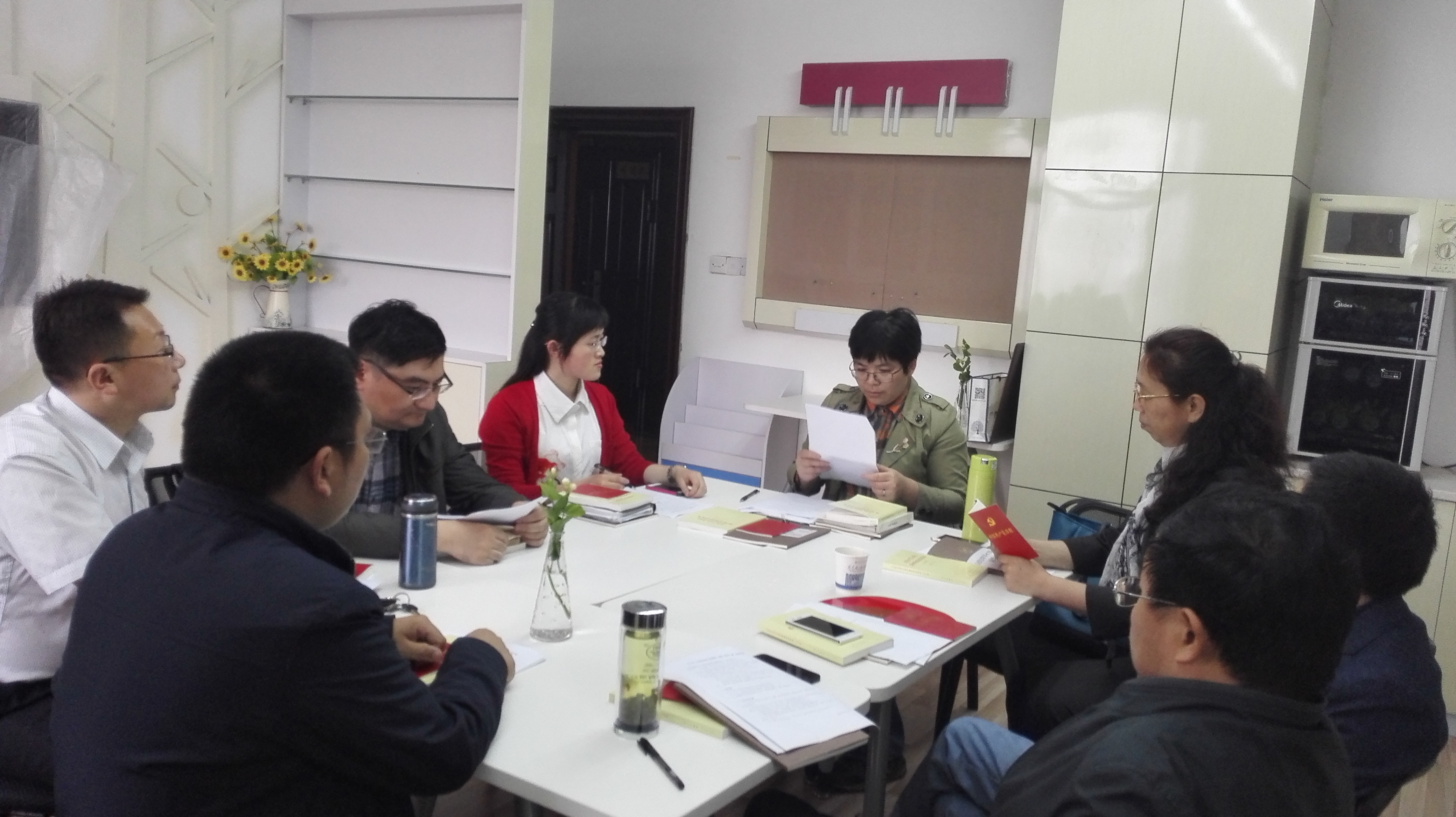 2016513日下午,“中国近现代史纲要”教研中心党支部在学院“党员之家”召开“两学一做”学习交流会和专题报告会。会上,支部书记董海樱传达了学院党委关于“两学一做”的基本要求,就支部深入学习党章党规、学习习近平总书记系列重要讲话和批示精神作了认真部署;段治文教授结合自己长期的学习和研究做了精彩的专题报告;全体党员围绕专题报告以及支部“两学一做”活动计划,进行了深入探讨和交流。