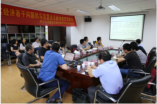 6月25日下午,研讨会分2个阶段进行,由卢江副教授主持。第一阶段由清华大学经济学研究所王生升副教授、中国人民大学张晨副教授、南京财经大学经济学院周绍东副教授、华中科技大学经济学院杨成林讲师、浙江外国语学院国际商学院宋树理副教授等就一带一路的历史定位、美国制造业复兴战略、五大发展理念的政治经济学解析、农业体制再转型、十三五期间我国贸易进路等问题做主题发言,《求是》杂志社吴晓迪进行了点评;第二阶段由西南财经大学经济学院韩文龙讲师、四川大学经济学院骆桢讲师、浙江省委党校杨俊讲师、南开大学经济学院冯志轩讲师等就资本循环与经济危机、马克思宏观经济模型的建构、资本权力与深层生态治理、中国区域收入差距等问题做主题发言,上海对外贸易大学王朝科教授进行了点评。